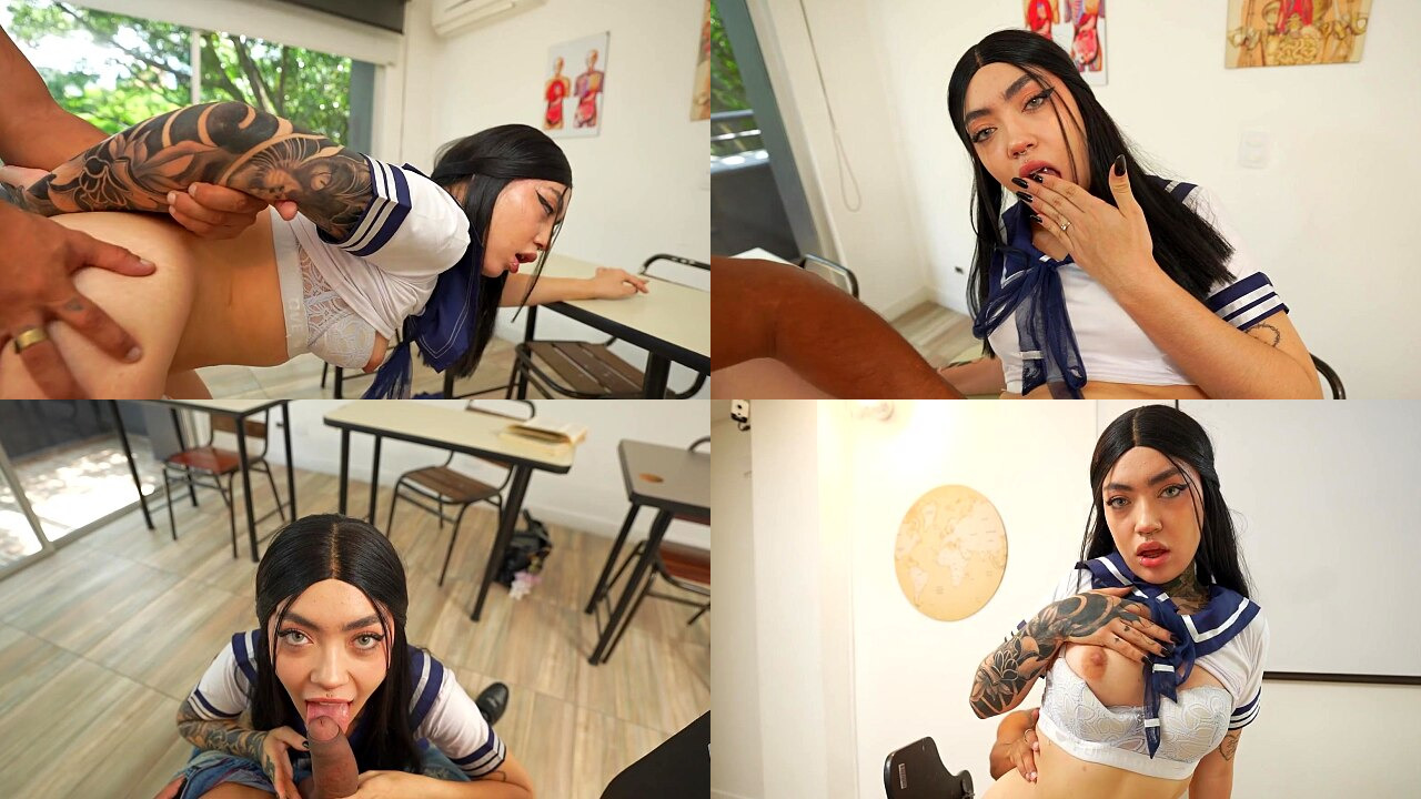 BIG ASS schoolgirl fucks with the teacher to pass the TITS. Aradia Hellx