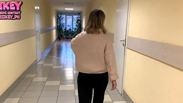 Young student doesn't want to study, she wants to fuck in the dorm toilet for money